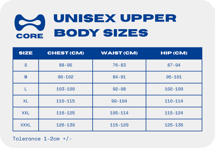 All our CORE Ranges come in Kids, Unisex and Ladies sizes